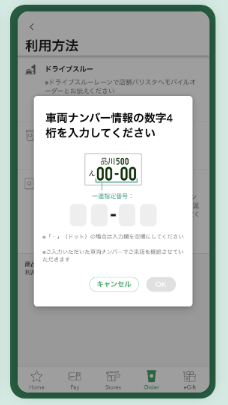 受け取る店を選択後、利用方法でドライブスルーを選択。